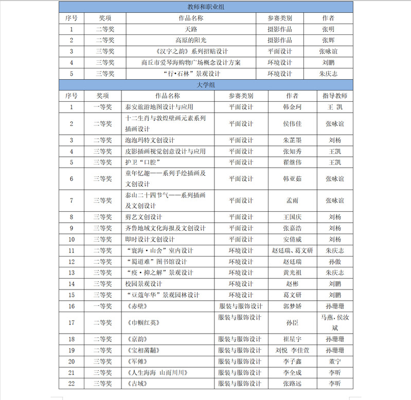 第六届山东高校美术与设计作品大赛获奖名单(部分)